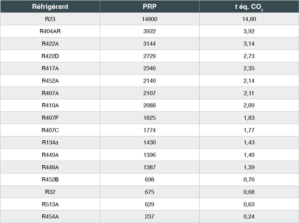 - 1 kg de réfrigérant possède une valeur PRP.